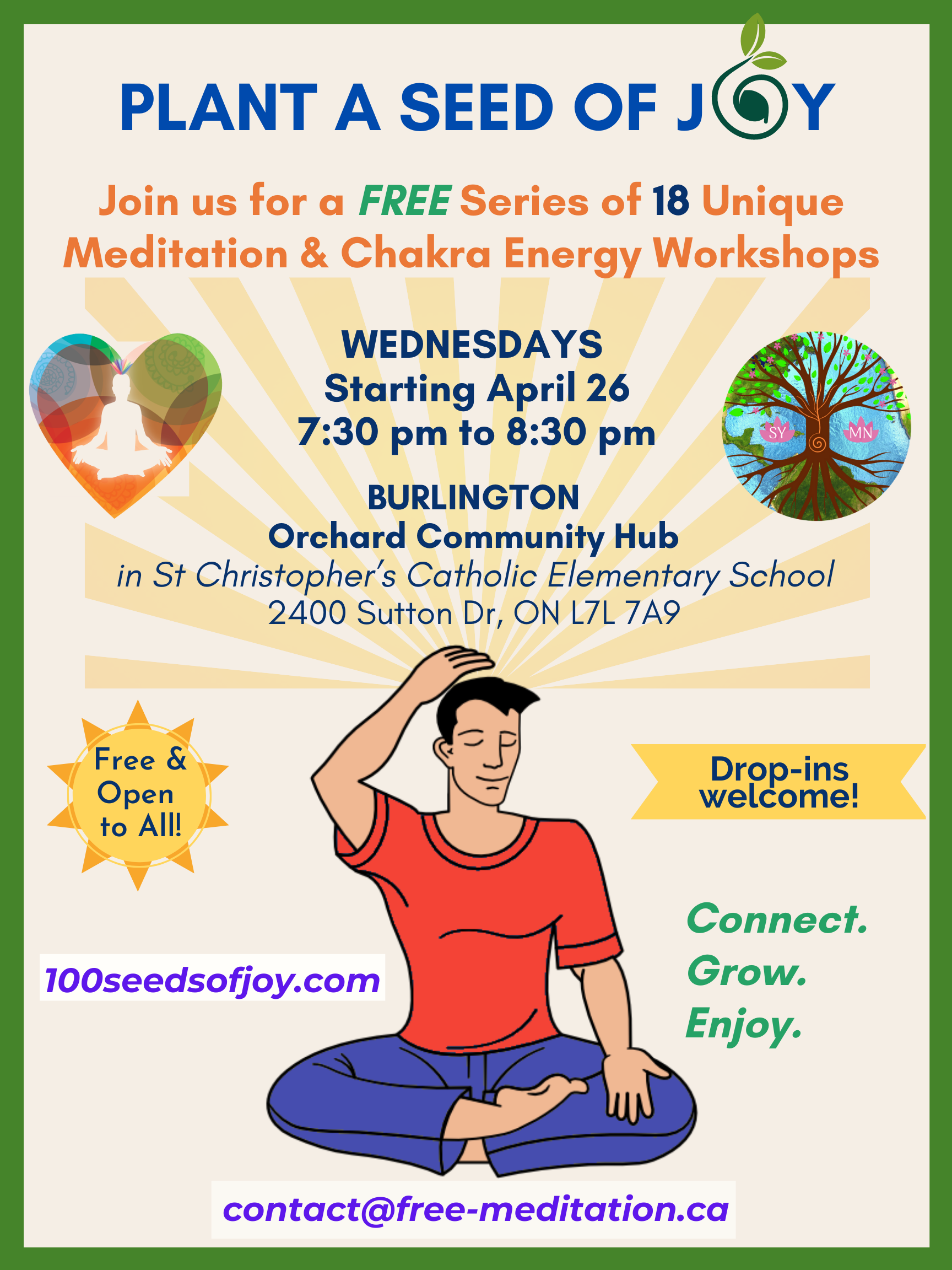 Join us for a FREE Guided Meditation and Chakra Energy Workshops to help manage anxiety and other inbalances. Drop-ins welcome.