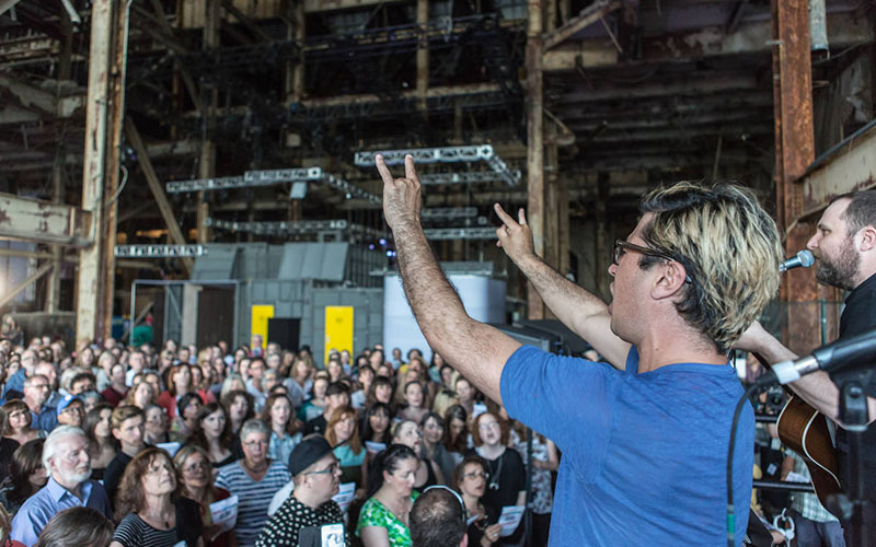 Daveed Goldman and Nobu Adilman (AKA “DaBu”) started Choir! Choir! Choir! as a weekly drop-in singing event in February 2011. Equal parts singing, comedy, and community-building, the night unfolds like a dream: you get a lyric sheet at the door, DaBu teach you the vocal arrangement, and a video is recorded. Everyone has a ball and goes home feeling great!