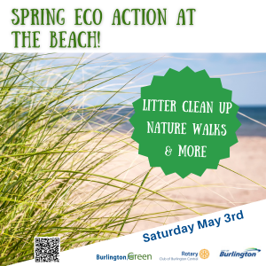Join BurlingtonGreen and Rotary Club of Burlington Central for a day of eco-learning and eco-action at the Beach on Saturday, May 3rd.