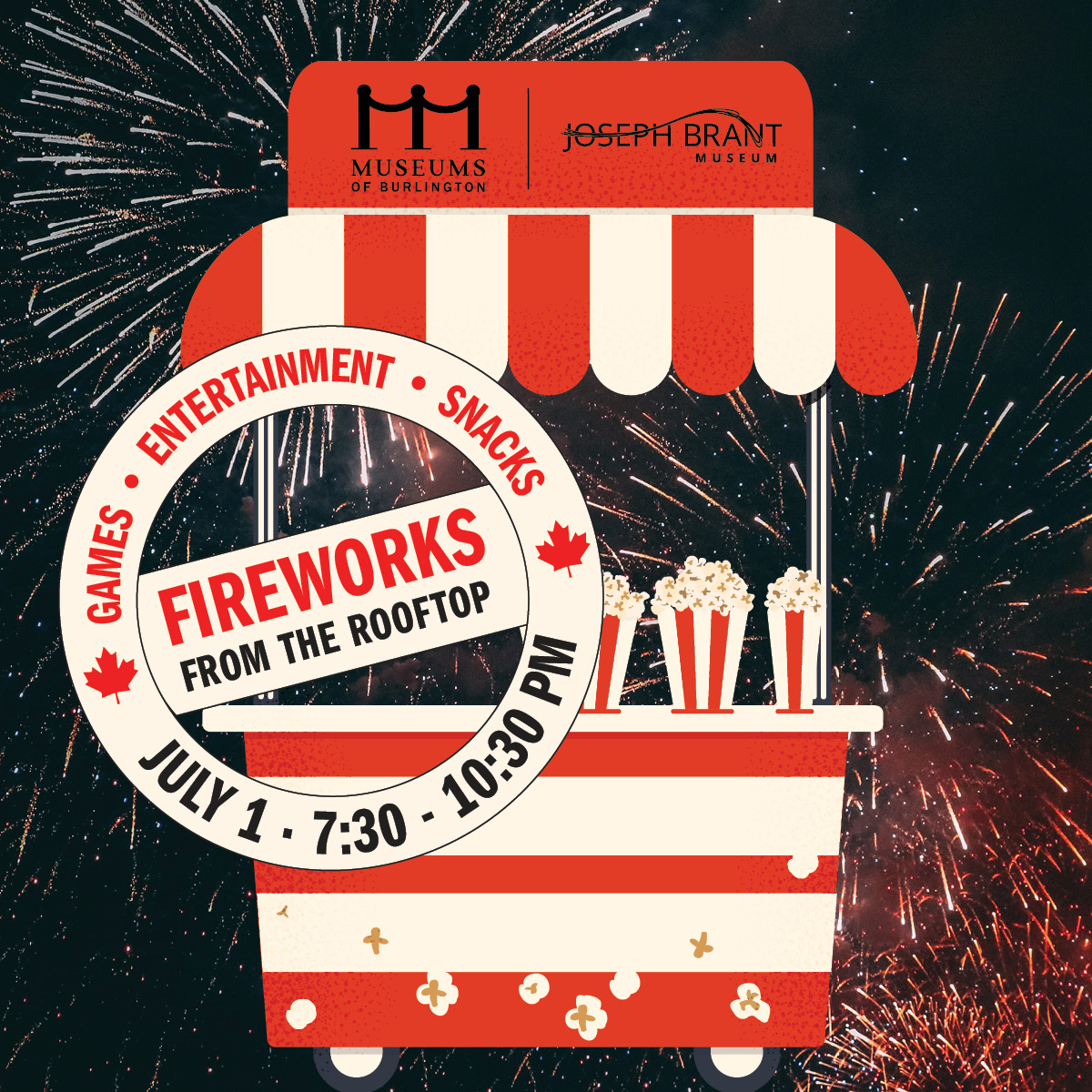 Enjoy an evening of food, drinks, games, and live music with a premiere view of Burlington’s Canada Day Drone Show & Fireworks! Join us for Fireworks from the Rooftop at Joseph Brant Museum on July 1, 2025 from 7:30pm-10:30pm.