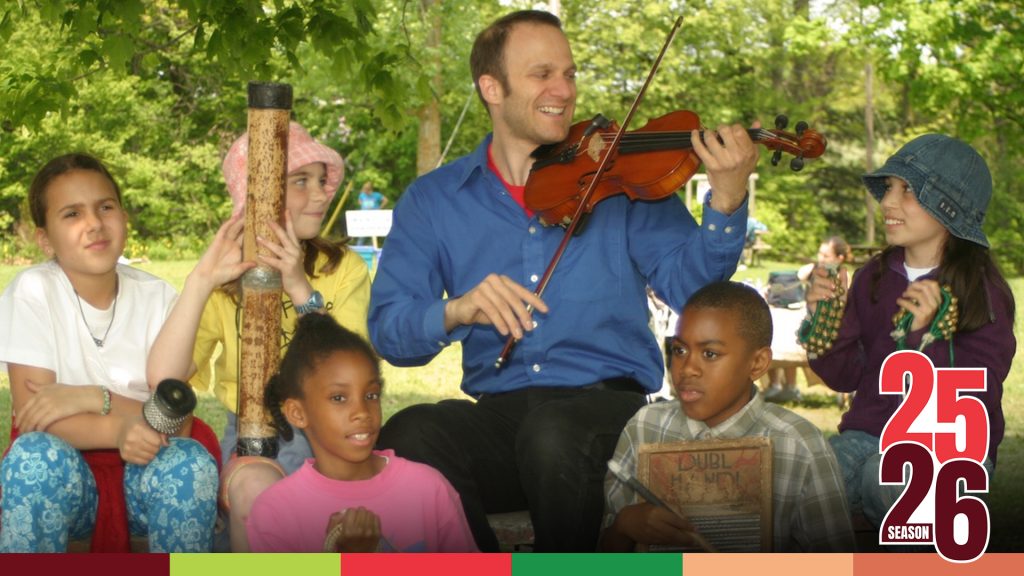 Cushion Concert! Part musical performance, part environmentalism and 100% fun! This award-winning show is fully interactive, as kids join the Chris McKhool and his musical friends from Sultans of String on stage playing percussion instruments from around the globe, dance to the global grooves, and sing songs about taking care of our planet. For three decades, Chris has taken his audience beyond the 3 R’s of ecology (Reduce, Reuse, Recycle) to a new level of understanding of our global connection to forests, air, water and animals. Everyone leaves with the feeling that they can really make a difference!
