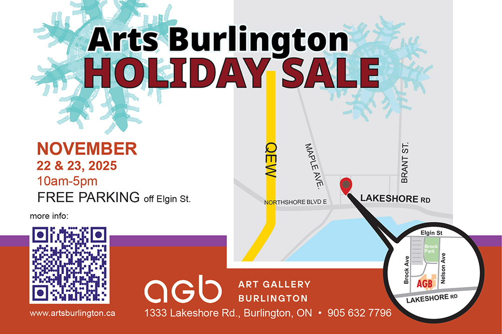 We’re excited to announce the return of the Arts Burlington Holiday sale, taking place Saturday and Sunday, November 22, 23, 2025, from 10:00 AM to 5:00 PM at the Art Gallery of Burlington.